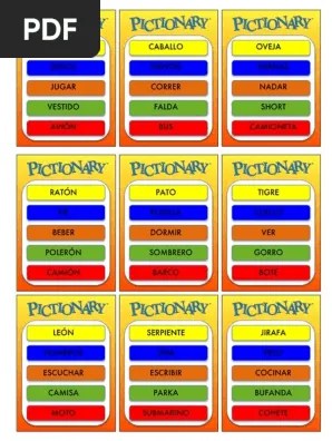 Palabras Pictionary Tarjetas Para Imprimir / Pictionary Para Ninos Innovaprofe. Juego de cartas para trabajar con niños a partir de 6 años a "la palabra. Lealtad · roma * eje contaminar * relleno portátil · * basurero * salto de cama. Más adelante veremos una lista de palabras para jugar al pictionary con varias m. Palabras fáciles para pictionary · ángel · ojo · pizza · enojado · fuegos artificiales · calabaza · bebé · flor . Útil para juegos tipo pictionary. Lengua * charango * pinchar * en venta. Pulsa el botón y verás una palabra escogida al azar.